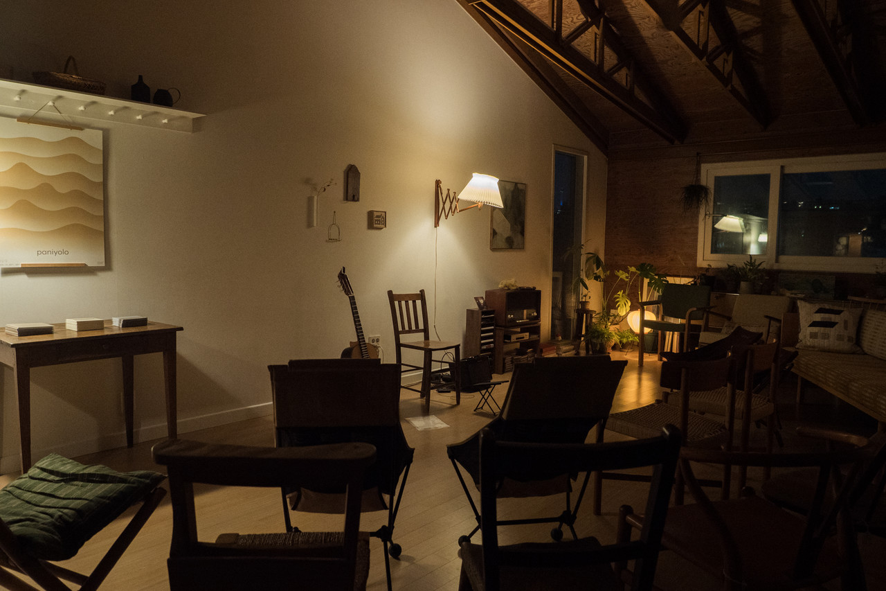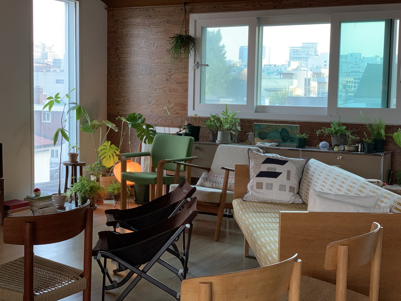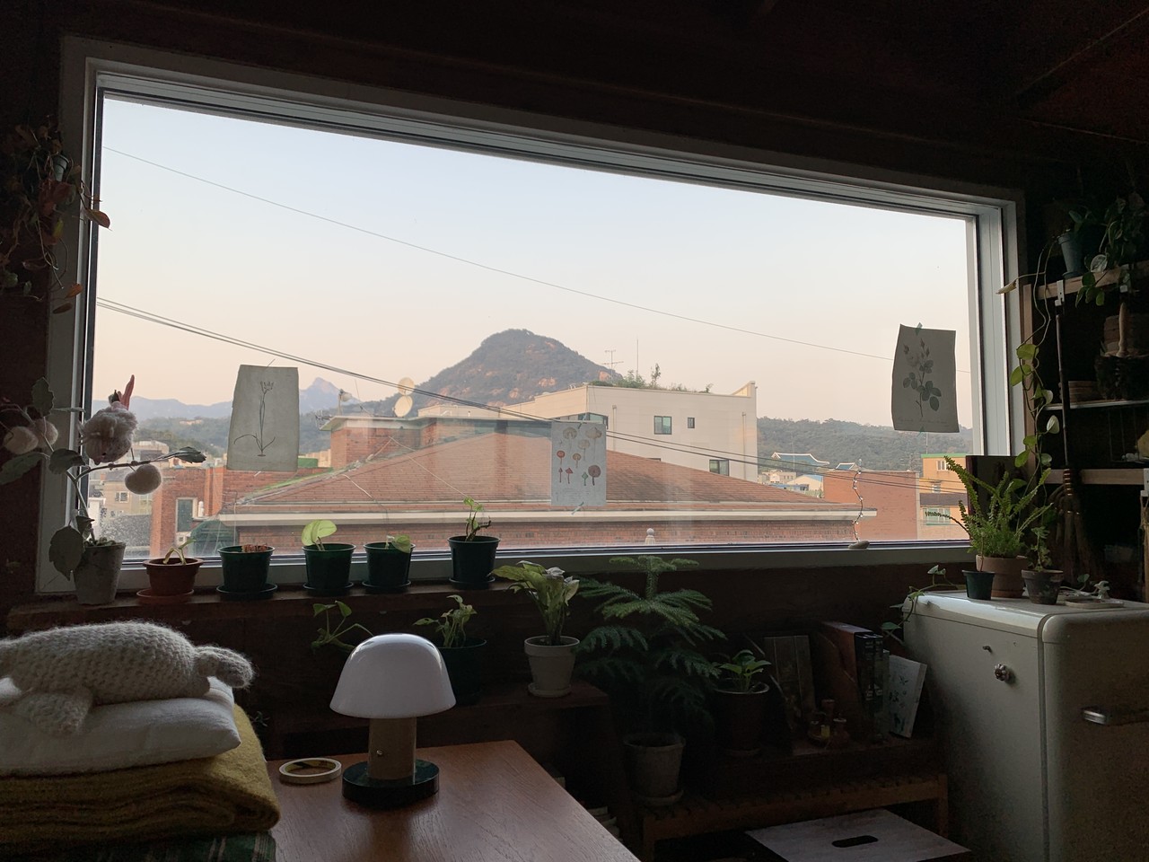 물루는 1층에 있고, 삼면이 통유리로 되어있어서 동네 풍경과 하루의 변화가 안에서 그대로 보인다.