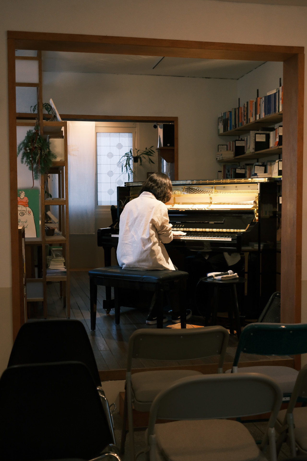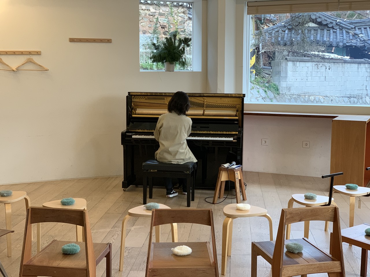 수빈 님이 연주를 해보시는 동안 의자를 놓았다.