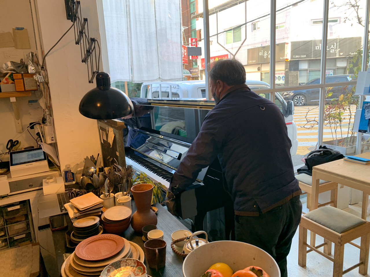 비워진 공간에 피아노가 도착했고, 수빈님은 소리와 건반 상태를 체크했다.