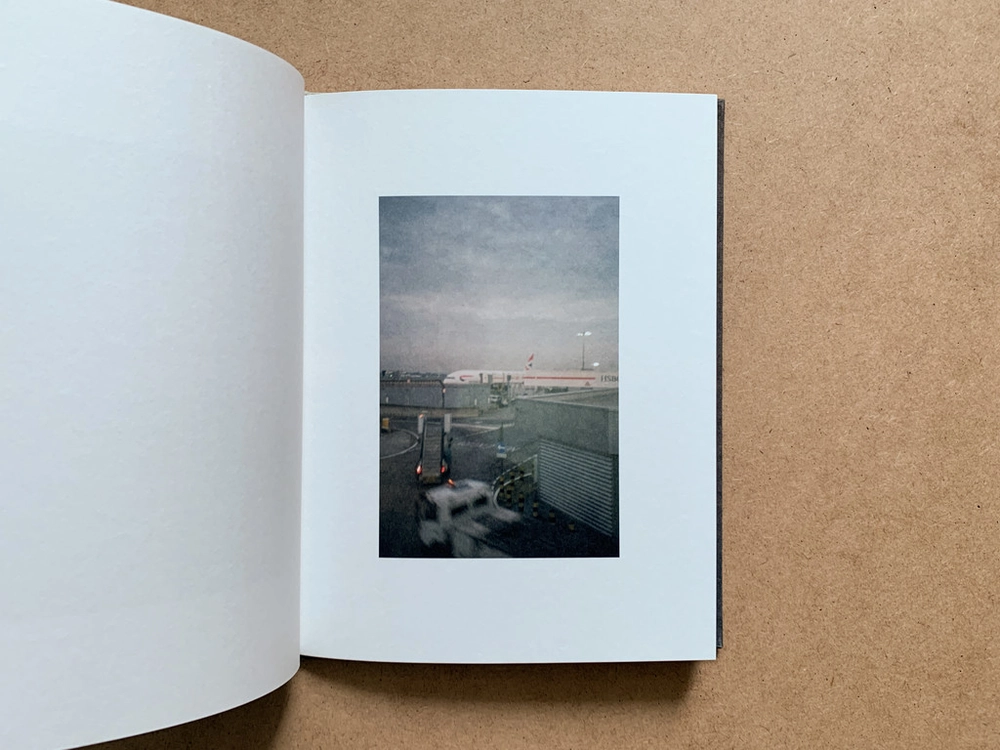 8년이라는 기간 동안 촬영한 수많은 사진 중 비행기, 공항, 하늘과 같은 이동과 관련된 사진과 테이블 표면, 의자, 컴퓨터와 같은 정착과 관련된 사진을 중심으로 사진 선택을 했습니다.
