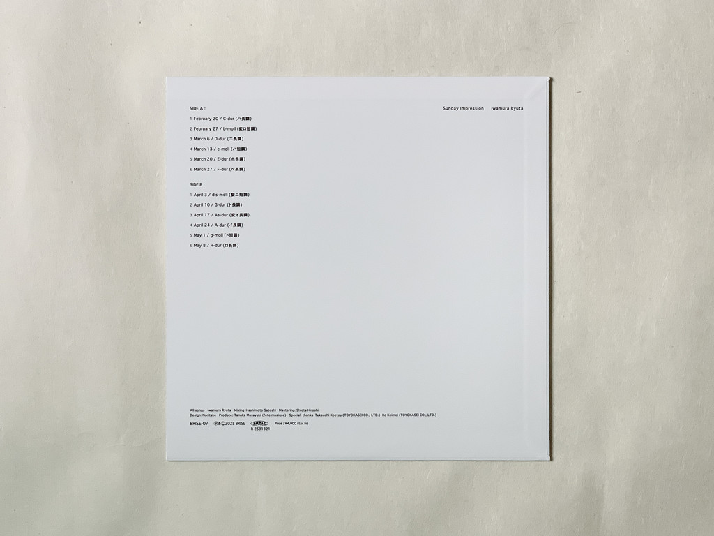 이와무라 류타의 Sunday Impression은 바흐의 평균율 클라비어곡집처럼 12개의 건반(1옥타브)을 반음씩 올려, 매주 일요일에 1개의 조로 한 곡씩. 12주에 걸쳐 만들어낸 매우 개인적인 소품집입니다.