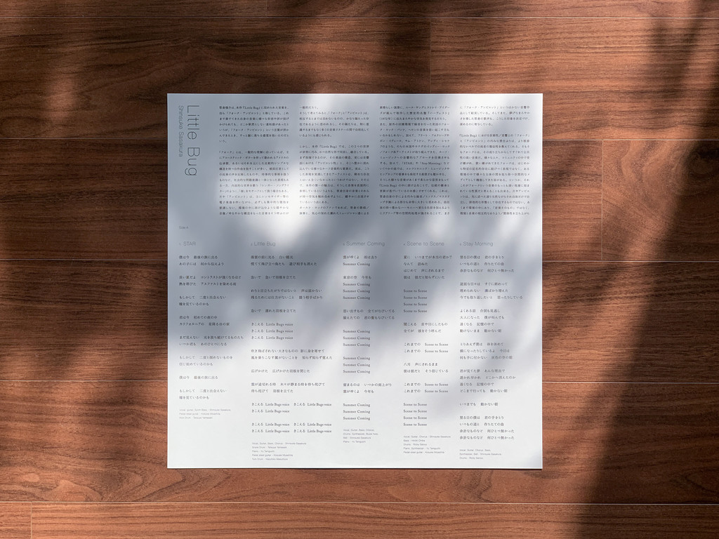 사사쿠라 신스케의 Little Bug는 2022년 1월 세 번째 앨범 발표 이후 10개월 만에 발표한 포크 앰비언트 앨범이며, 포크, 포크 록, 앰비언트 장르를 다양한 차원에서 심도 있게 녹여낸 작품입니다.